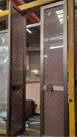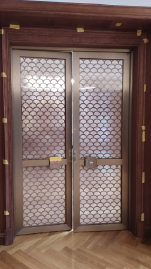 The work is titled “Scale Shadow”. Its design extracts the beauty of natural fish scales. The double-fan opening form is combined with continuous hollowed-out scale patterns, and the rhythm conceals the charm of the East. It is suitable for the new Chinese-style space, infusing the environment with dynamic artistic tension and becoming a visual core that integrates practicality and aesthetics. The material is selected from high-quality metal, which is strong and tough to build a stable structure. After special treatment, the surface spreads a warm and lustrous color, breaking the cold and hard impression of metal and transforming the door from a spatial partition into an artistic carrier that can be touched and felt. In terms of craftsmanship, the fish scale shapes are presented with precise cutting and carving, showcasing fine detail through smooth, hollowed-out areas and flowing lines. The metal surface is polished and colored (adjusted according to actual conditions), and each “scale” embodies the craftsmanship of the artisans. Through the deep integration of craftsmanship and art, it interprets the exquisite level of customization. With its unique design and delicate texture, it writes a new chapter in the art of space.